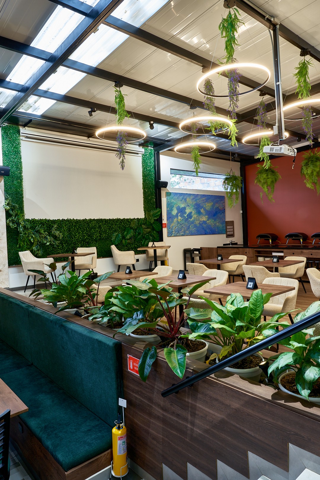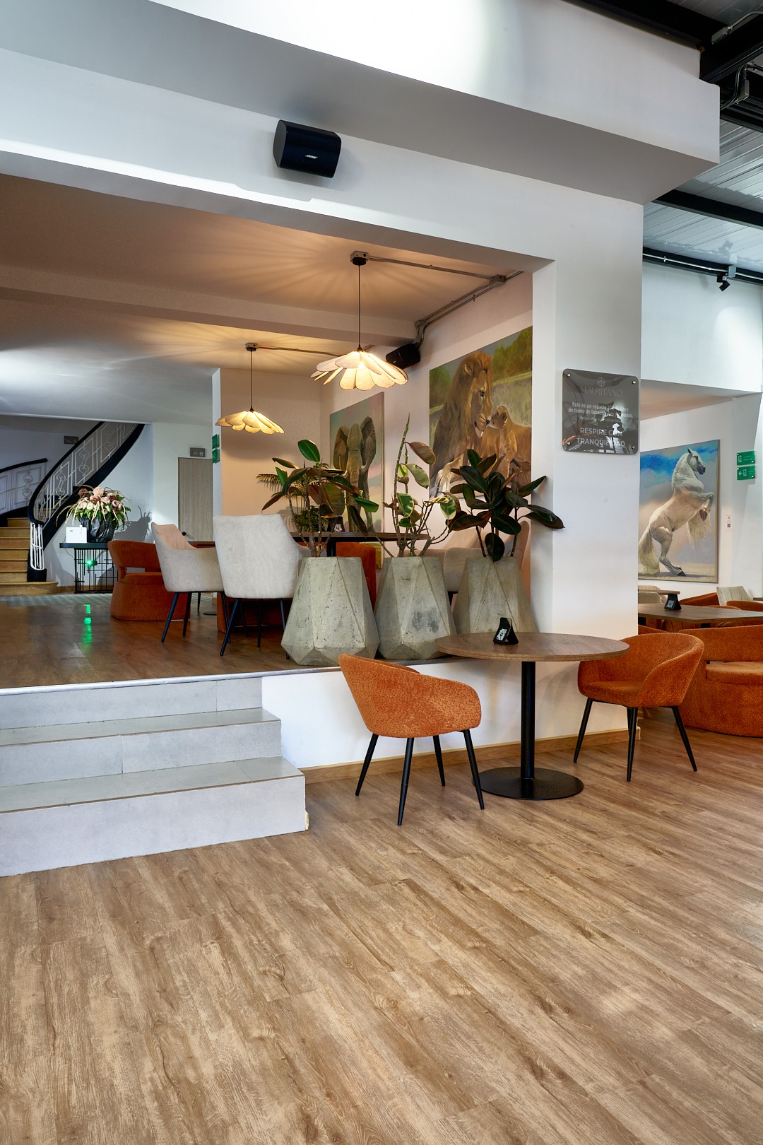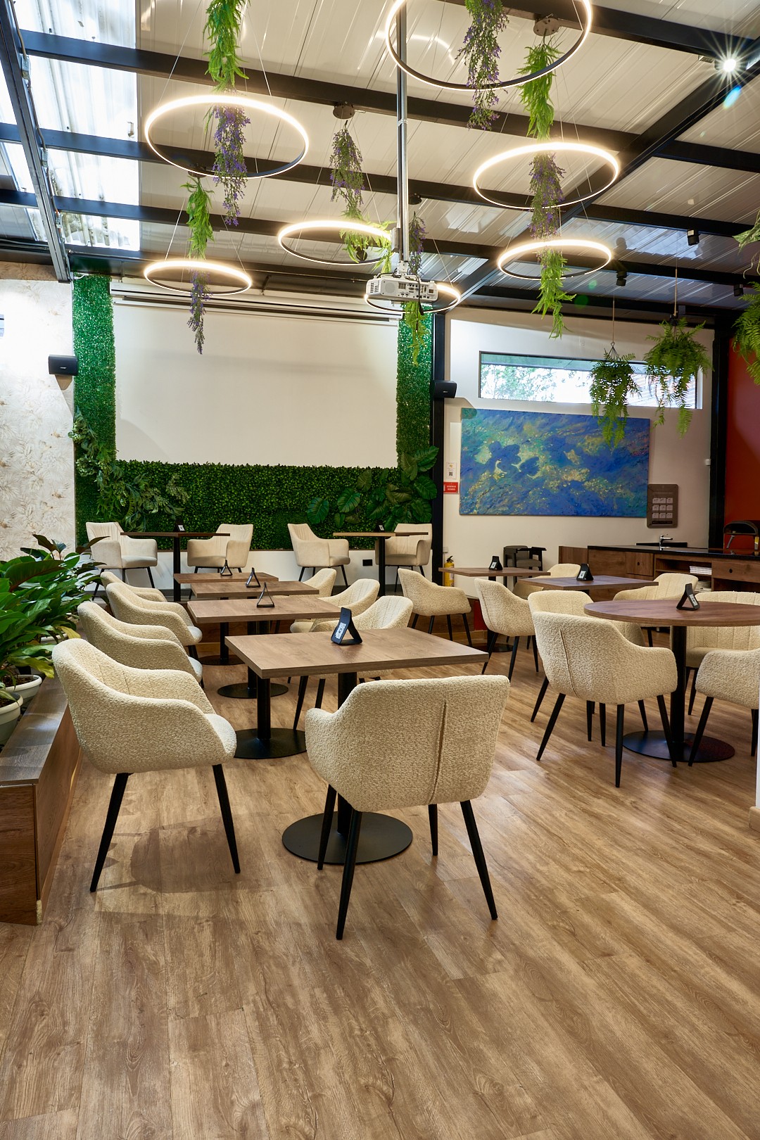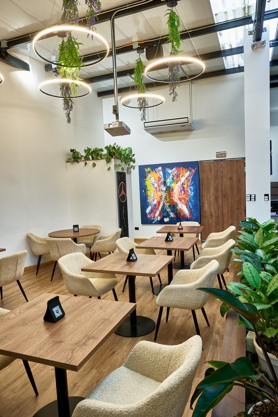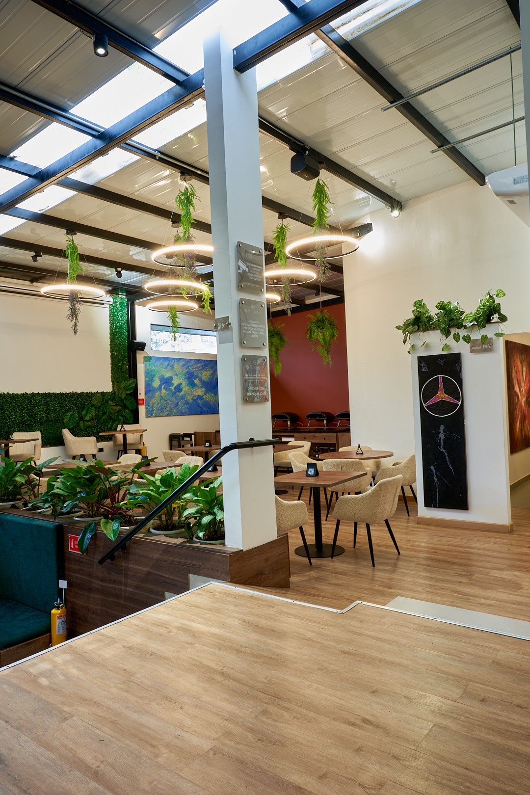 El diseño, inspirado en materiales naturales y vegetación viva, refleja el concepto de ecosistema creativo: un lugar que inspira, conecta y evoluciona.